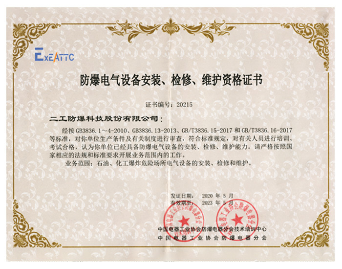 二工防爆體現(xiàn)“顧客第一、信譽(yù)第一”的服務(wù)宗旨,為顧客 提供長(zhǎng)期的技術(shù)支持和全方位服務(wù)維修。
